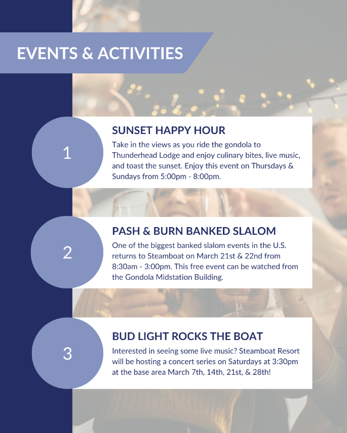 3. Bud Light Rocks The Boat - Interested in seeing some live music? Steamboat Resort will be hosting a concert series on Saturdays at 3:30pm at the base area March 7th, 14th, 21st, & 28th!