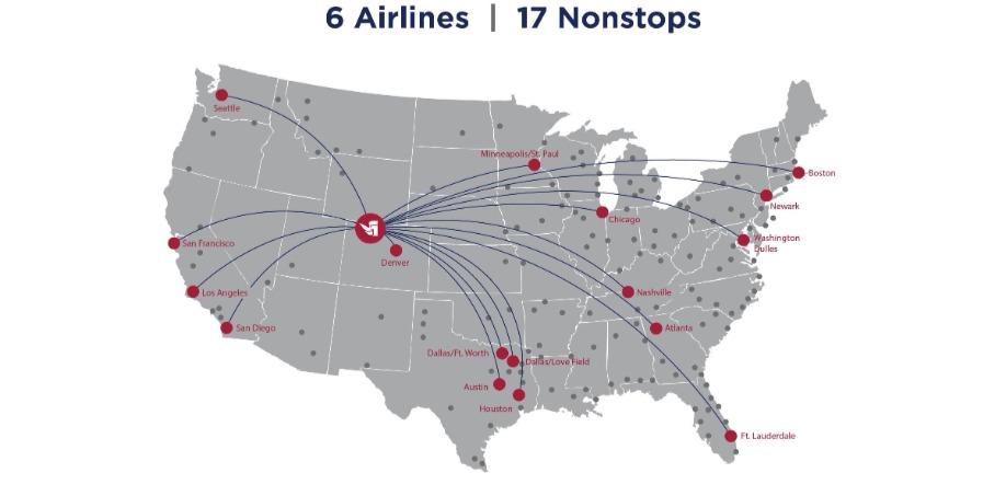 | Denver (DEN) | United Airlines | Daily, up to 3x Daily | 11/22/25 - 4/19/26 | View Price |